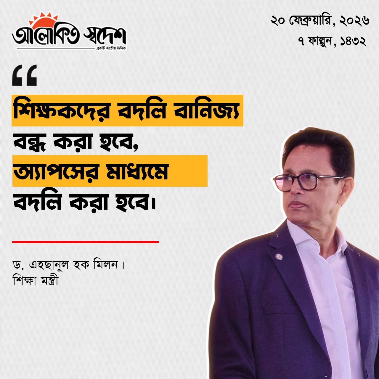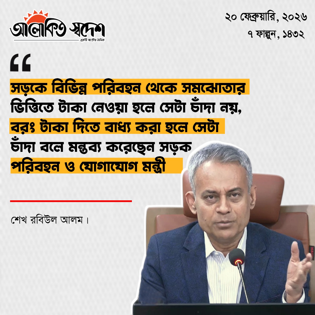 তিনি আরো বলেন, আচরণ বিধিমালা, ২০২৫-এর বিধি-২৭ অনুযায়ী এই লঙ্ঘন শাস্তিযোগ্য অপরাধ। The Representation of the People Order, 1972 এর Article 91B (3) মোতাবেক-(ক) কোনো প্রার্থী বা তাহার পক্ষে অন্য কোনো ব্যক্তি নির্বাচন-পূর্ব সময়ে এই বিধিমালার কোনো বিধান লঙ্ঘন করিলে উহা হইবে একটি অপরাধ এবং তজ্জন্য তিনি অনধিক (৬) ছয় মাসের কারাদণ্ডে অথবা অনধিক ১ (এক) লক্ষ ৫০ (পঞ্চাশ) হাজার টাকা অর্থদণ্ডে অথবা উভয় দণ্ডে দণ্ডনীয় হইবেন; (খ) কোনো নিবন্ধিত রাজনৈতিক দল নির্বাচন-পূর্ব সময়ে এই বিধিমালার কোনো বিধান লঙ্ঘন করিলে উহা হইবে একটি অপরাধ এবং তজ্জন্য উক্ত রাজনৈতিক দল অনধিক ১ (এক) লাখ টাকা অর্থদণ্ডে দণ্ডনীয় হইবেন।